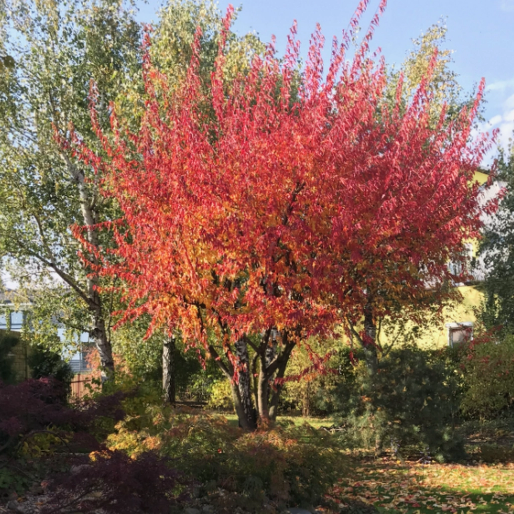 Lombhullató, közepes méretű fa, melyet dekoratív értéke miatt kedvelünk. Erős
