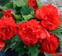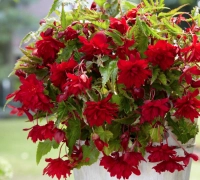 Ár: 2800 Ft - Kód: 31403E begónia telt, nagy, piros szirmú virágai a rózsákra emlékeztetnek. A virágok és a sötétzöld levelek közötti kontraszt pompás látványt nyújt. Egész nyáron át virágzik. Csodásan díszíti...Jelenleg nem rendelhető