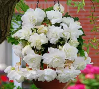 Ár: 2800 Ft - Kód: 31439Ez a csüngő begónia bőségesen virágzik egész nyáron át és az ősz első felében. Nagy méretű, telt, fehér virágait púderrózsaszín árnyalatok teszik még bájosabbá. Látványos virágzásá...Jelenleg nem rendelhető