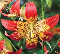 Ár: 2100 Ft - Kód: 31304Ázsiai eredetű, rendkívüli szépségű liliom. Élénk piros színének köszönhetően nyár elején szemet gyönyörködtető dísze lesz kertünknek. Szoliterként vagy csoportosan, más liliom...Jelenleg nem rendelhető
