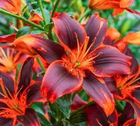 Ár: 2100 Ft - Kód: 31321A Twosome liliom egy varázslatos ázsiai hibrid. A csillogó narancssárga szirmok belső fele bársonyos, sötétbíbor színű, majdnem fekete árnyalatú. A virágok hosszú időn keresztül díszítenek. Lenyűgözö...Jelenleg nem rendelhető