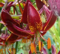 Ár: 2100 Ft - Kód: 31311Egzotikus, meggybordó szirmai bársonyosak, viaszos tapintásúak. Felfele tekintő, éjvörös, már-már fekete virágai merészek és rejtelmesek. Virágzási időszaka a júniusi és júliusi hónapok...Jelenleg nem rendelhető