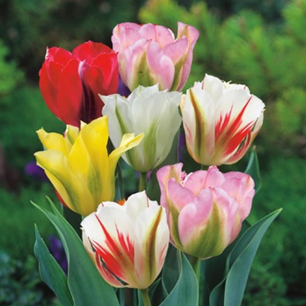 Vidám összeállítás változatos színekből. Csoportosan ültetve vagy szegélyként is szépen mutatnak. A csomag 8 darab hagymát tartalmaz.